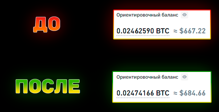 - Доход за одну сделку выходит от 1.5% до 5% за один круг, то есть при стартовом капитале в 1000$ за одну операцию со спредом 3% (разница в цене) мы получим доход от 22$ до 30$ (в зависимости от комиссии). И это за ОДНУ сделку, за 10-15 МИНУТ. Бывает, что доход за одну сделку доходит до 10-20% (при резких пампах на рынке) и это всего за 10-15 минут потраченного времени, а таких операций за день можно успеть провести несколько.